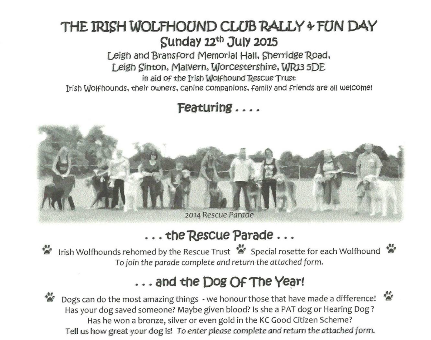 The Irish wolfhound Club Limit Show and Rally on Sunday 12 July