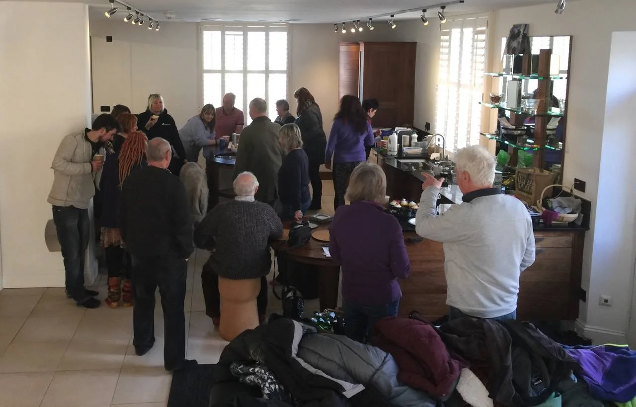 A new dynamic………….. Friday 6th February 2015 was the date set for our first combination Kennel Open Day and it was a resounding success on all sides! Broadholme House Farm paid host to 3 lots of visitors and a gaggle (seems to be the most appropriate collective noun) of existing owners. Although the customary show round of the Kennel facilities and meeting the dogs still took place, things took on a different dynamic with the owners also assisting and chatting to visitors about their experiences and the different aspects of the Kennel. It was a delight to see the meeting of different people, from various walks of life, with a shared love of our magnificent breed. Along with the trips up the paddocks in the RTV with the hounds running alongside, there was also the opportunity to get up close and personal with the dogs and even a grooming demonstration for those people wondering about how to care for a Wolfhound coat and also owner thinking about showing and preparing their dog for the ring. Just like every other great party, the hub of activities eventually descended on the kitchen and we were all delighted to be offered some great refreshments (and cake….naturally) enjoying fabulous company and convivial surroundings. As some of our visitors had travelled considerable distances including Cornwall, we consider it only polite to ensure that they are ‘fed and watered’ before returning home! The Bonaforte Kennel will most definitely be hosting another similar event in the next few weeks, once Crufts is over and the weather has improved too, potentially early April and we envisage that this format will go from strength to strength?